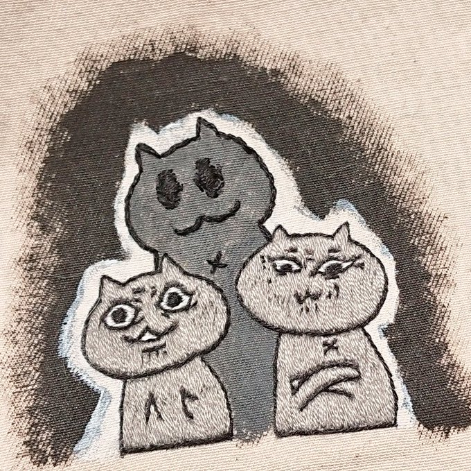 その3:物心ついたにゃトート個別で(リクエストありがとうございます) #関羽祭 #トートバック #刺繍 #アクリル絵の具 #リクエスト刺繍