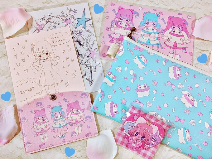 もちたゃ【 @maumaumooo 】からゆにぱれグッズが届いたよ〜〜〜〜めっちゃくちゃにかわいい………💙💗💙💗 大切に使います🐱🐻🐰