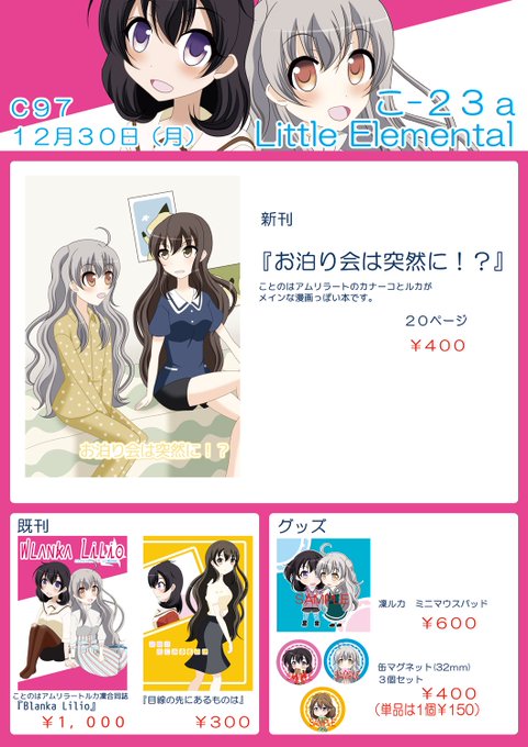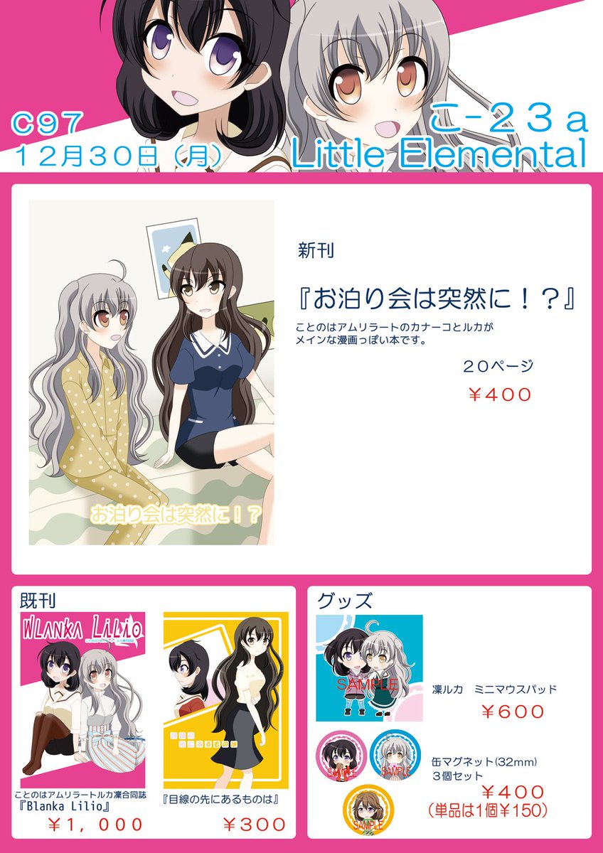 設営準備できました! こ23a「Little Elemental」です アムリラートの豪華ではない方の新刊とか置いています! よろしくお願いします! #ことのはアムリラート #ことのは同人 #c97