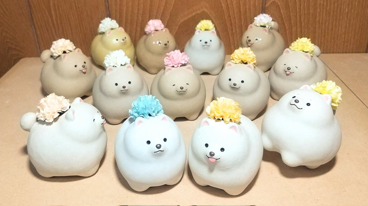 【デザフェス56 販売作品⑤】 ◆いぬの一輪挿し ◆いぬの置物 →まんまるなわんこ達です🐶 ◆日本犬のこいぬ一輪挿し ◆日本犬のこいぬ置物 →ちょっぴりスリムなわんこ達です🐕️ #デザフェス56 #デザフェスお品書き