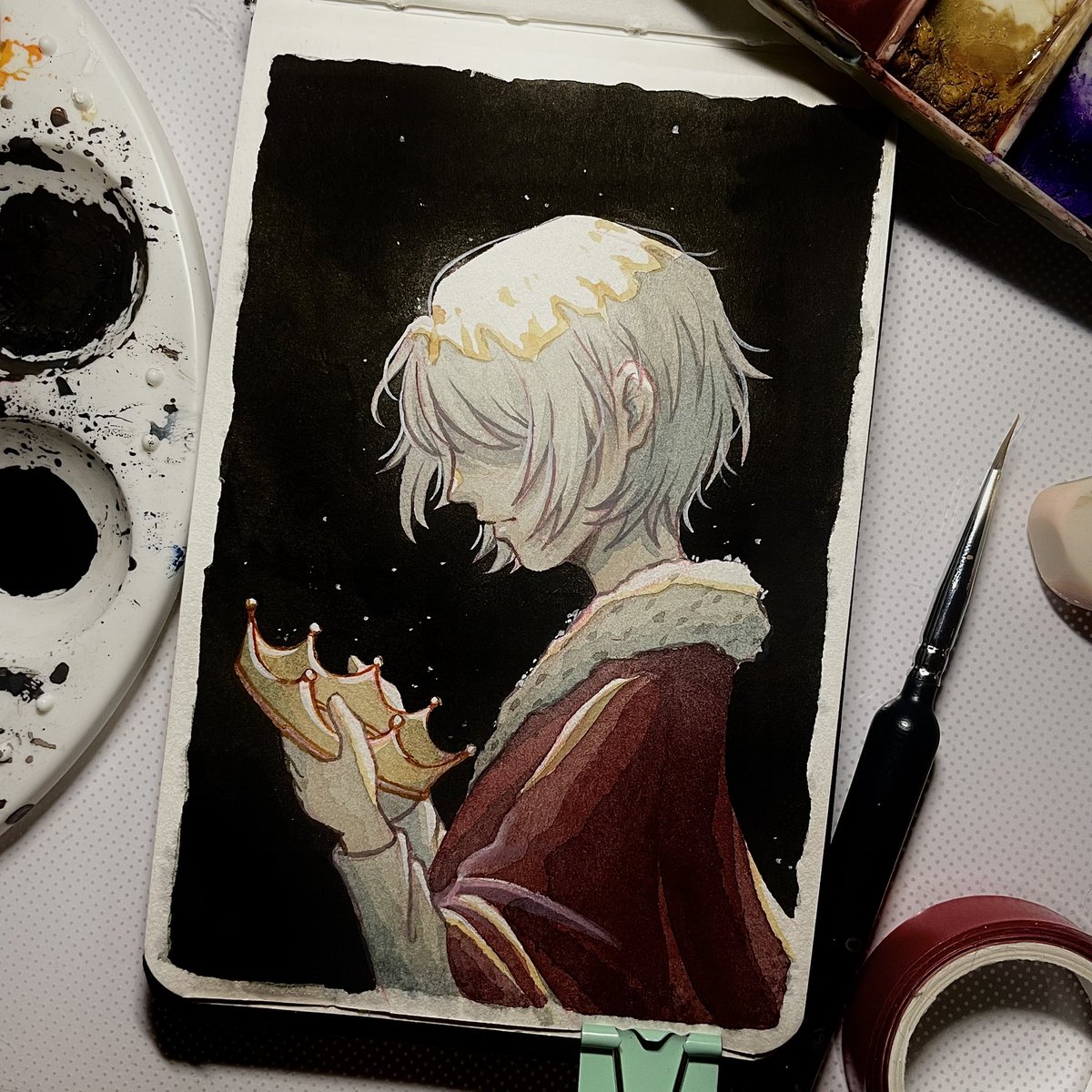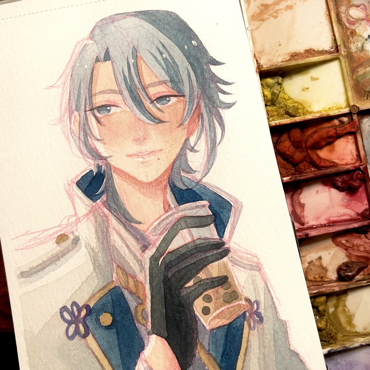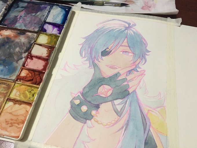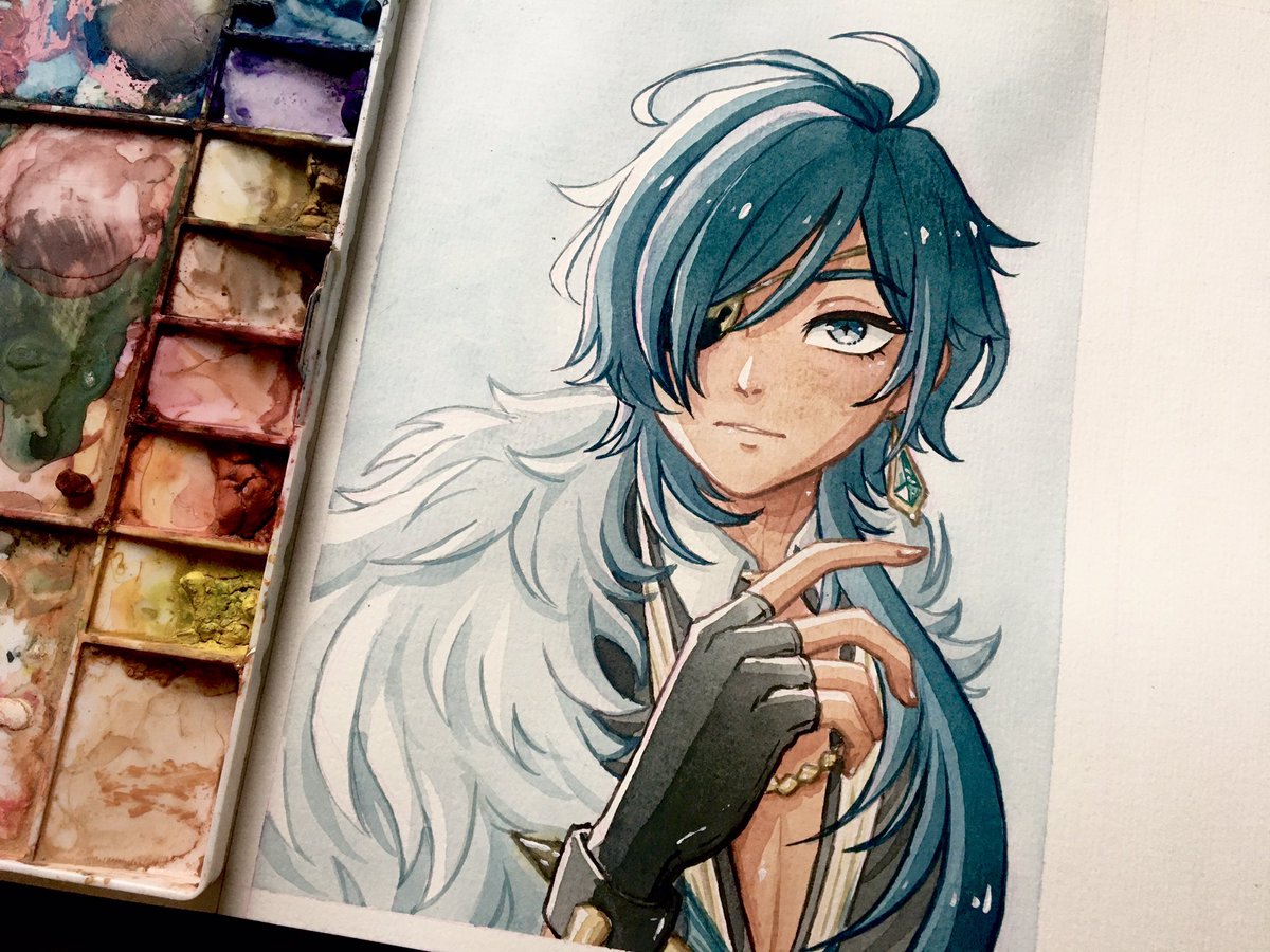 Kaeya wip 😩👌 Hopefully I don’t ruin this one cuz it’s been a while since I touched my watercolors. #genshintwt #Kaeyafanart #fanart #genshinimpactfanart