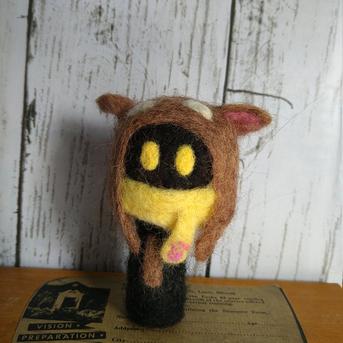 はこたろさんは四角が難しくて、羊毛を刺し過ぎて折れた針が頭に埋まったままになってます😭踏まないようにします🦶 1番初めに作ったミントスさん✨肩当て?が合ってるのかが不安ですが(笑)可愛く出来ました😍 #bintrollFA #羊毛フェルト