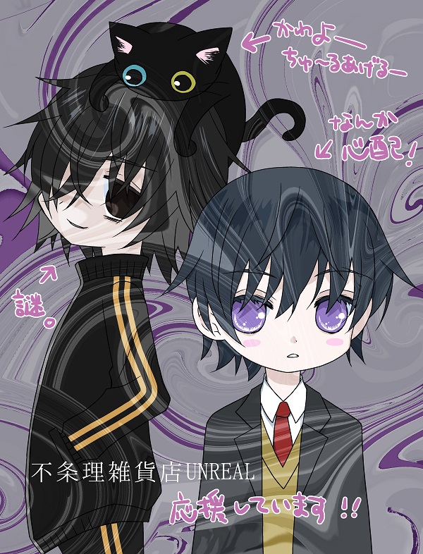 不条理雑貨店UNREAL➀発売を祝してファンアート描いてみた。 ムネチカくんの憂い帯びた目元が素敵過ぎるけど描けないヤギオさんの背高くて痩せてる感じも出せないそして鮭とばちゃんかわよーだけどヤギオさんの命名なの?すべてをご存知のようなマトバさんも素敵。 #片山愁 #不条理雑貨店UNREAL