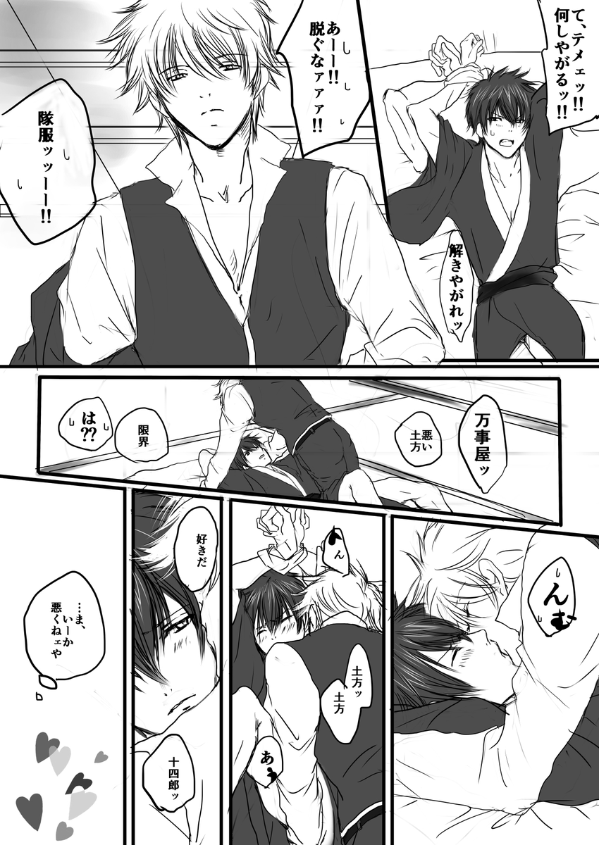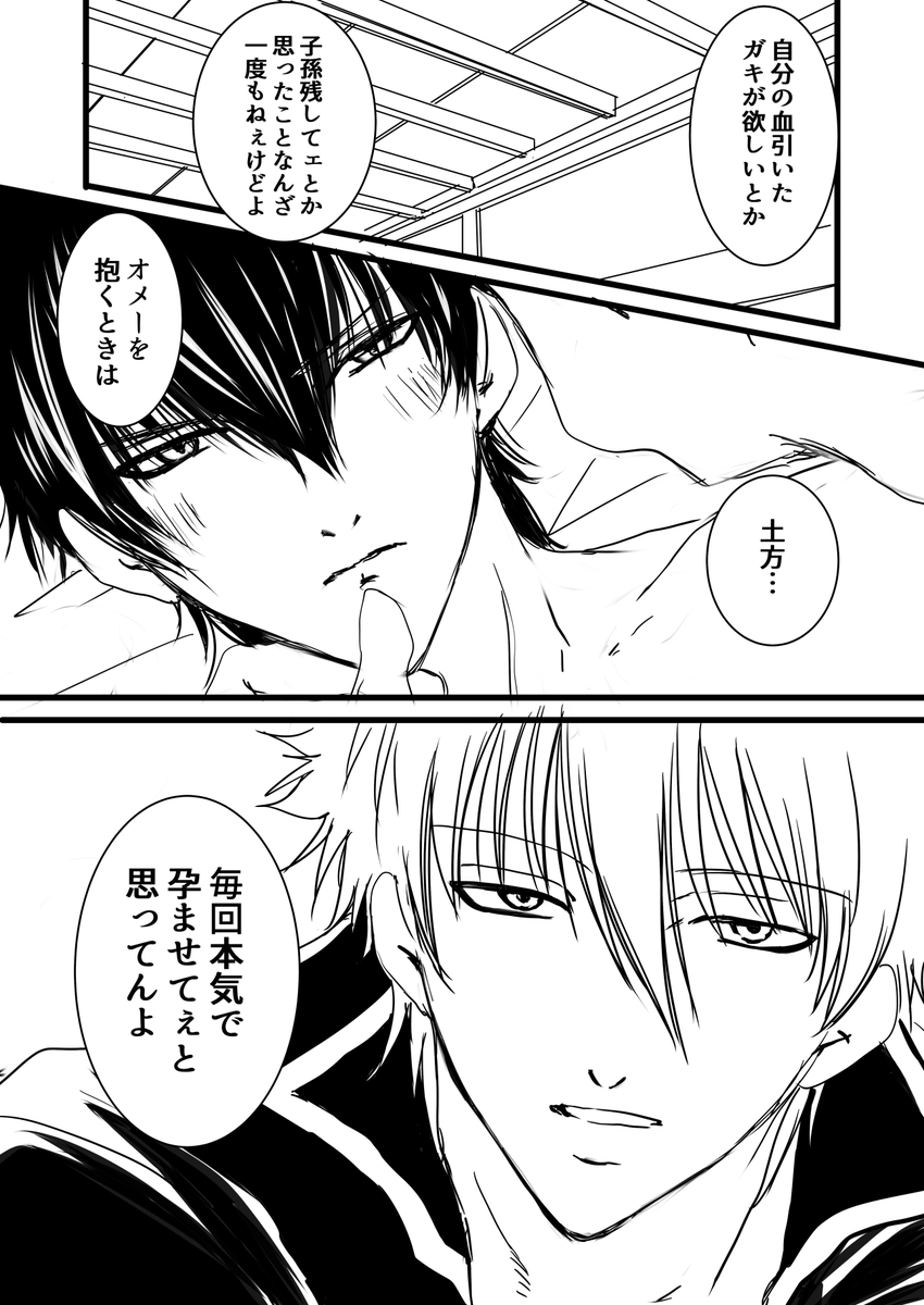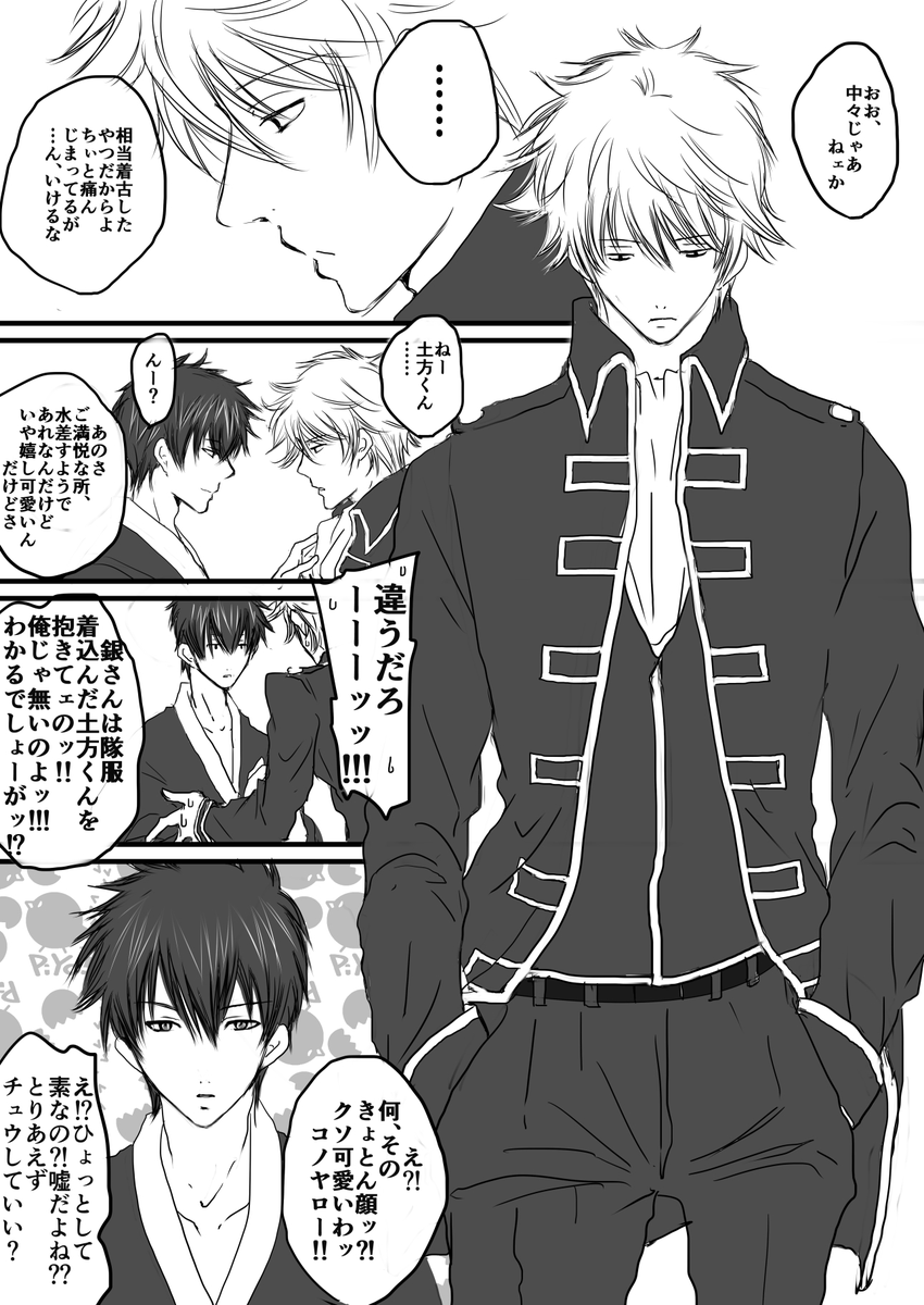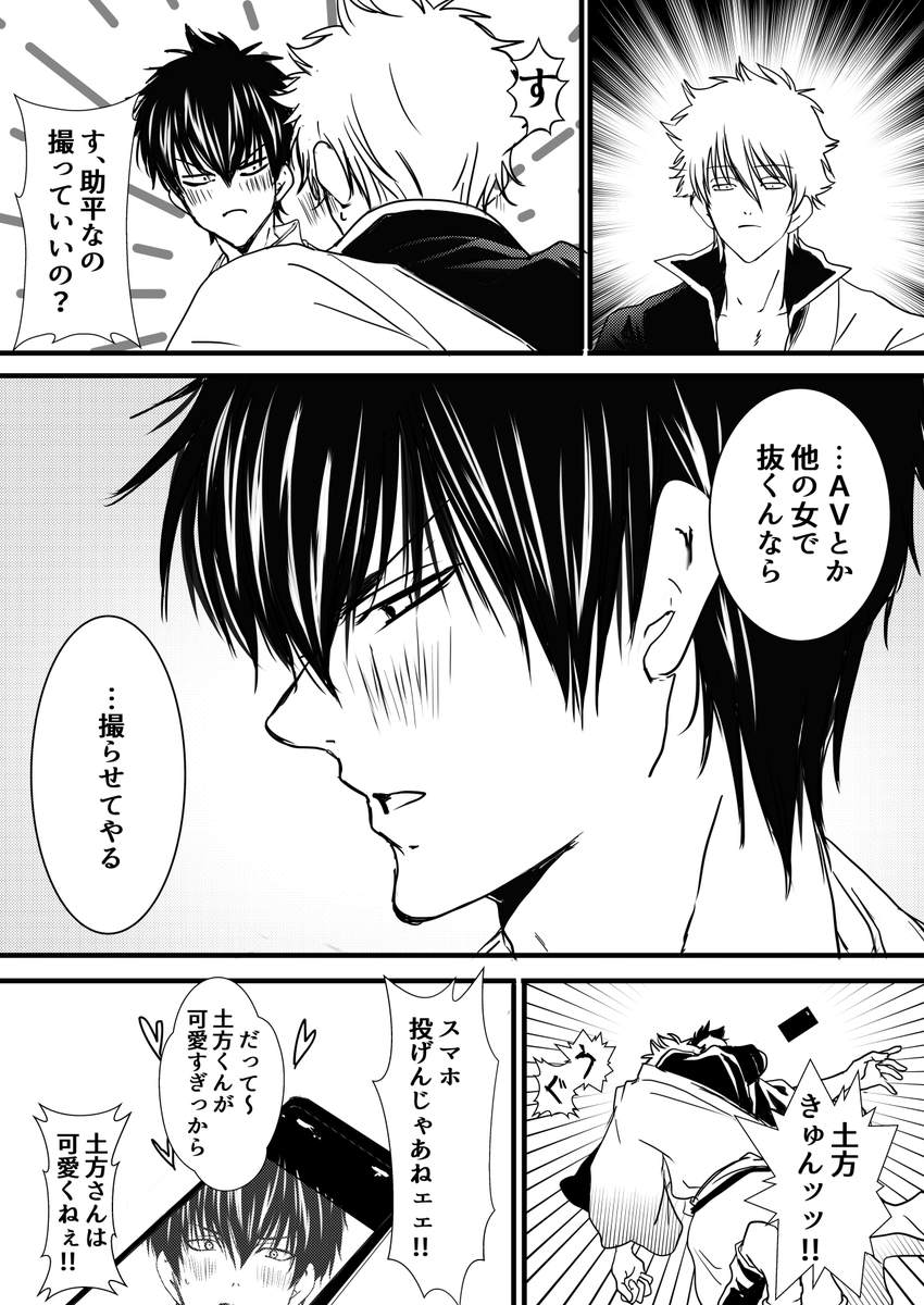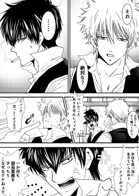 まだ付き合ってない、両片思い中の銀土落書き。 キスしちゃった次の日、突然恥ずかしさに襲われ一人悶えちゃう。 🍓さんも🚬くんもw