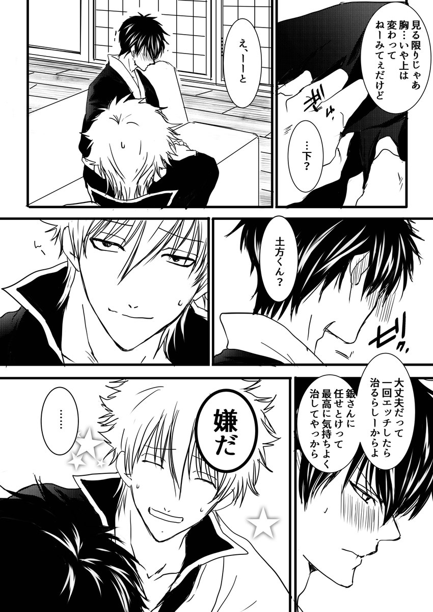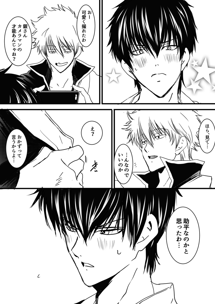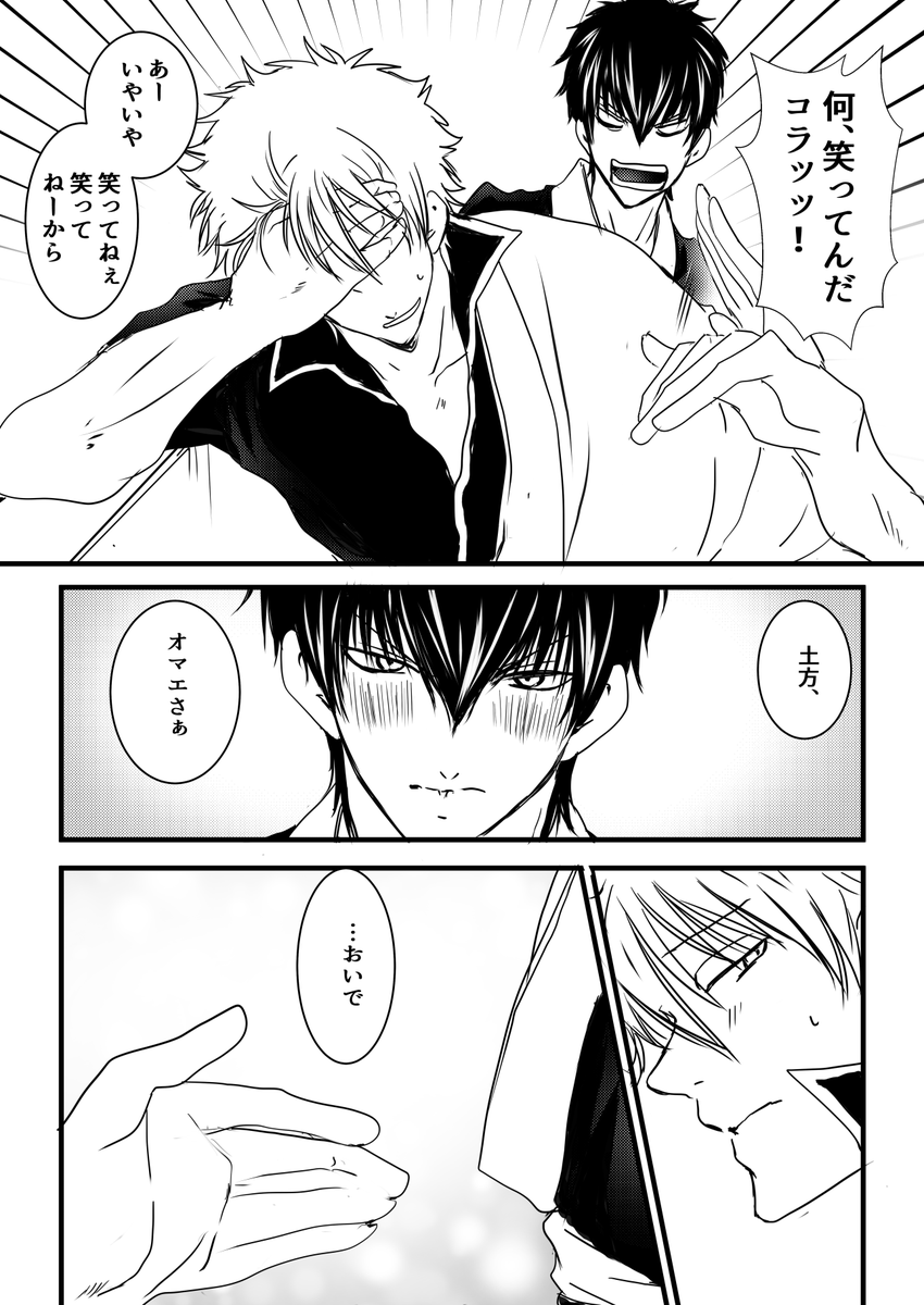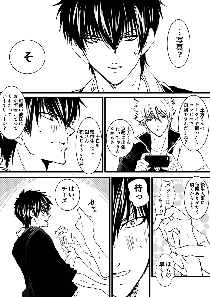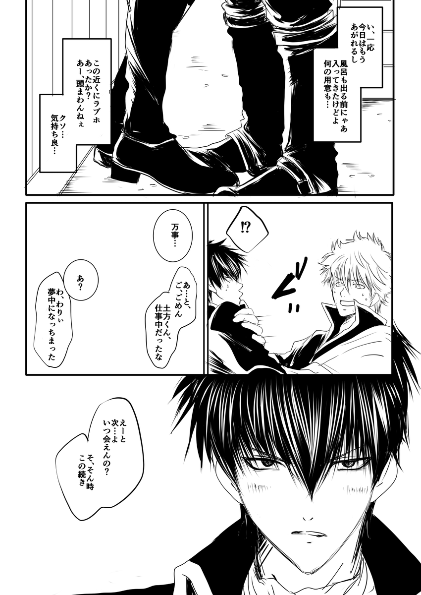 まだ付き合ってない、両片思い中の銀土落書き。 キスしちゃった次の日、突然恥ずかしさに襲われ一人悶えちゃう。 🍓さんも🚬くんもw
