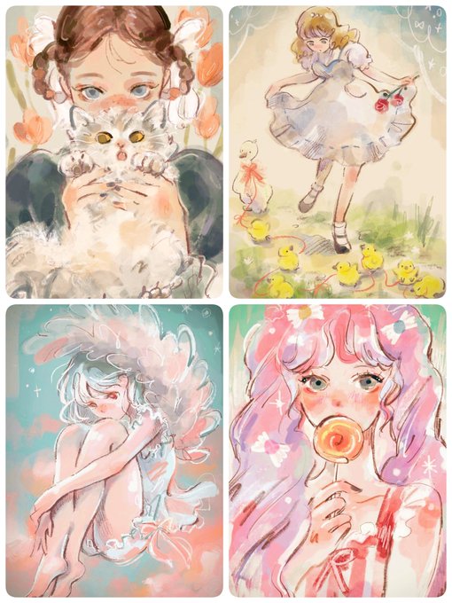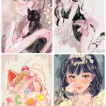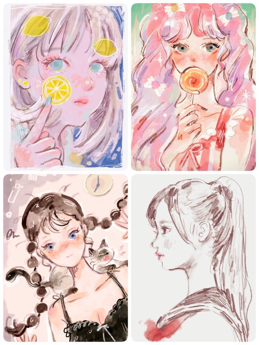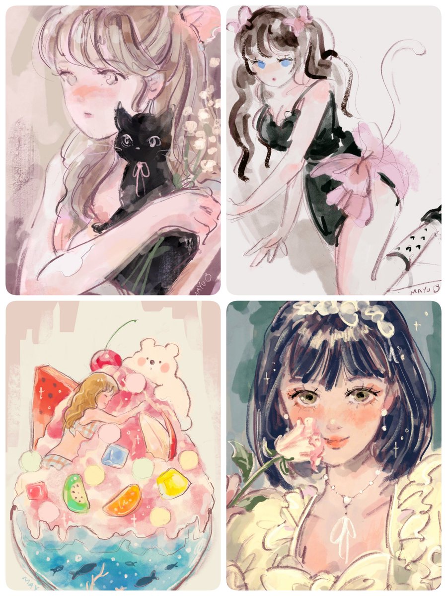 #あなたの評判良かった4選がみたい ここ数ヶ月のオリジナル絵に限ると、この4枚かな...。 なかなかこの一番反応良かった猫の絵を超えられにゃい🐱