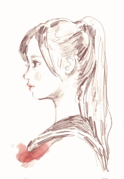 #今月描いた絵を晒そう オリジナル新規絵3枚よりも、息抜きで描いたスケッチ(ポニテの子)が一番反応良かったです。笑