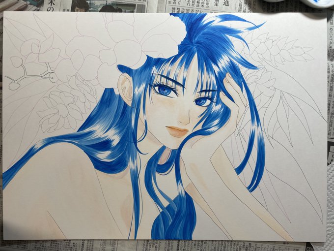 One step closer 完成です❣️❣️ A4ケントボード カラーインク 透明水彩絵の具 箔 金色水性顔料マーカー アクリル絵の具(肌のみ) #アナログイラスト #創作イラスト #illustration #みんなで楽しむtwitter展覧会