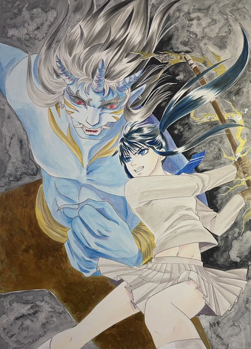 衝! 完成です😆 A4ケントボード アクリル絵の具 水彩絵の具 箔 見て下さってありがとうございます❣️ #アナログイラスト #創作イラスト #illustration #みんなで楽しむtwitter展覧会