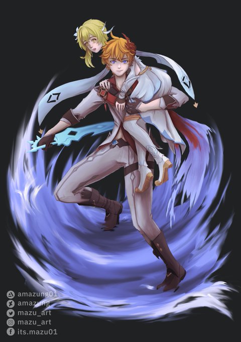 I try a new painting style this time. It seems the background is not very clear #Illustration #FanArt #fanart #artwork #digitalart #childe #tartaglia #lumine #genshinimpact #genshinimpactfanart #painting #details #animestyle #fullcolor #childexlumine #otp #couple #旅人 #原神