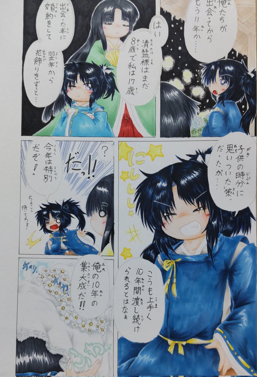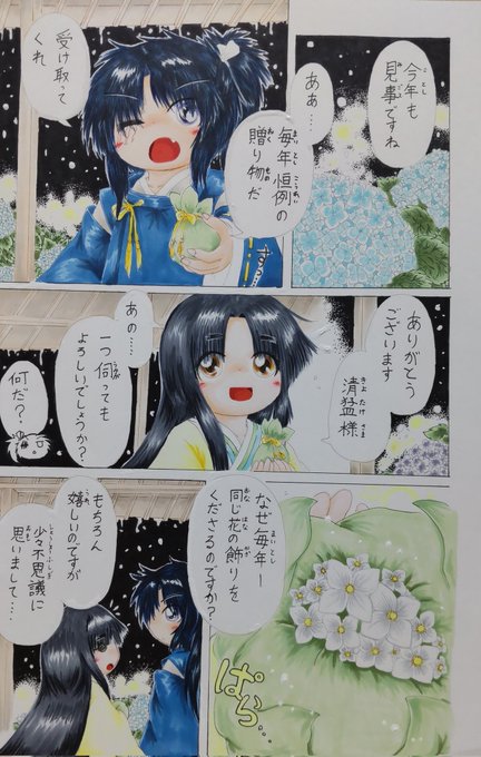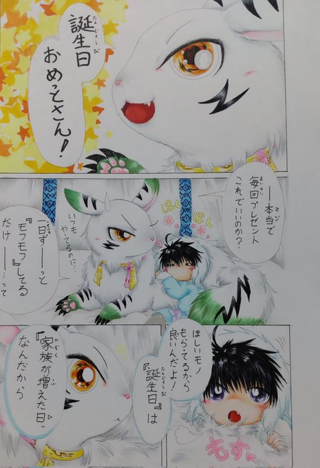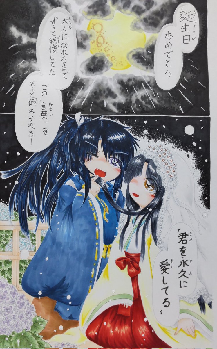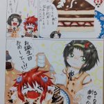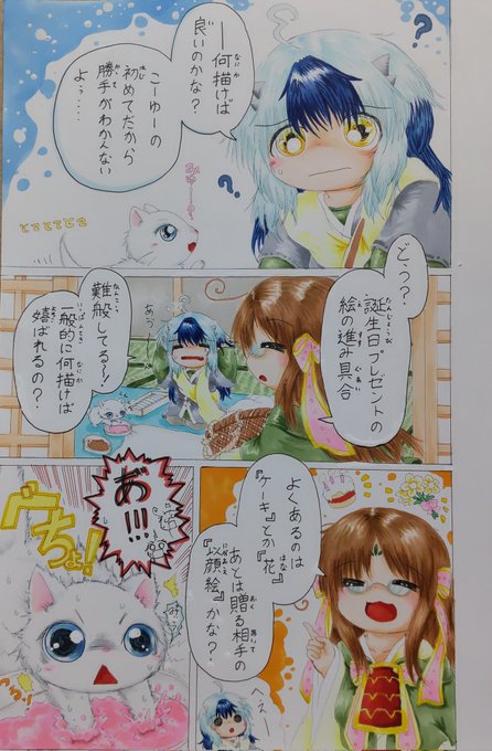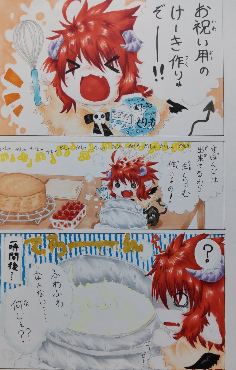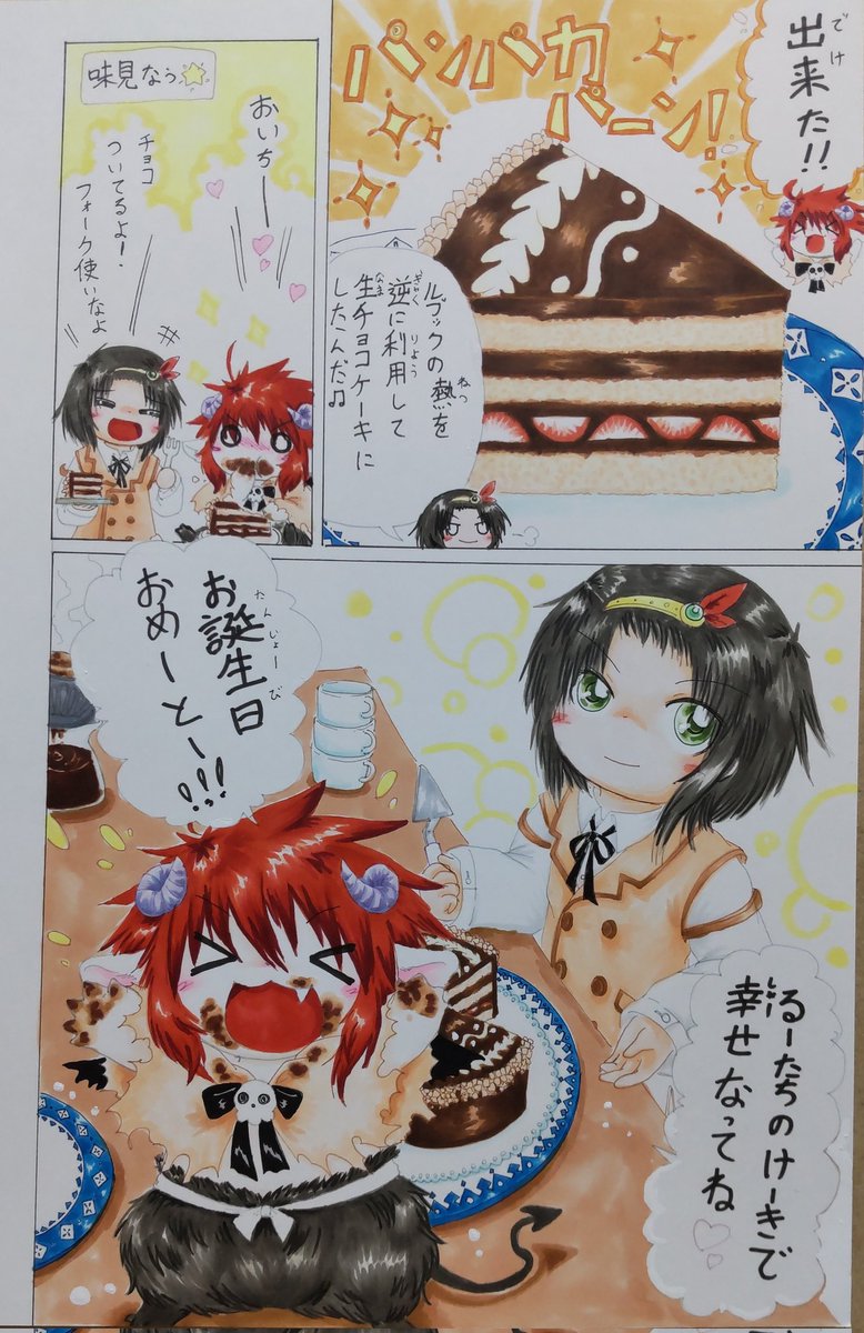 やっと完成✨今回の誕生日祝い漫画はほのぼの系🌸全然悪魔っぽくない悪魔っ子「ルブック」と友人の「ユミル」が担当♥️暫く忙しいので来月の誕生日祝いもこの漫画でいきます💦 #コピック #オリジナル漫画 #夏の創作クラスタフォロー祭り