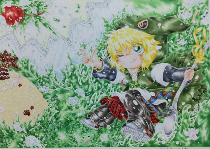 #コピックアワード2023 #copicaward2023 やっと完成しました✨ぎりぎりセーフでしたよ💧オリキャラ「エルマー」で描いた「メロンスプレッド」で今年は挑みます!ここまで緑使ったの初めてでした💦みんな見てってねー💚