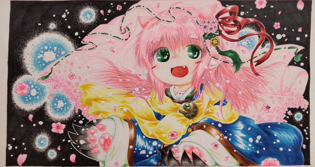 #アナログ絵で魅せてみよ コピックで重ねてボカしてまた重ねて〜!ほんわかもキラキラもなんだって出来ちゃう!!アナログも奥が深いよ✨時間や手間暇かけた分“深み”が出るのがまた良い所🎵by.大神主