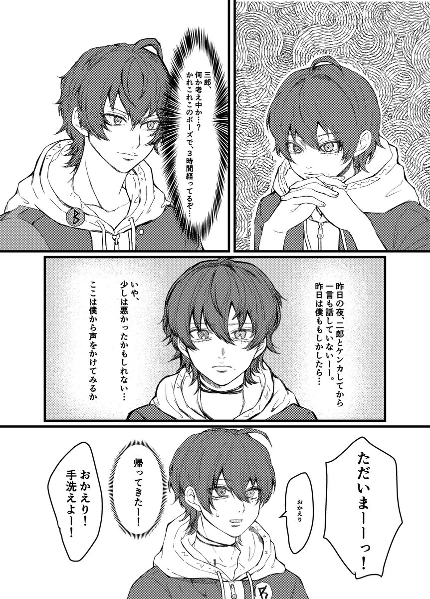 > 昨日喧嘩したじろと仲直りしたいけど、自分から声をかけたり素直に謝ったりするのは到底出来なくて、じろの方から声をかけさせる… #odaibako_mbis17_s odaibako.net/detail/request… 大変遅くなりましたが、描かせていただきました!お題ありがとうございました🙇✨(左上画像からスワイプしてください)
