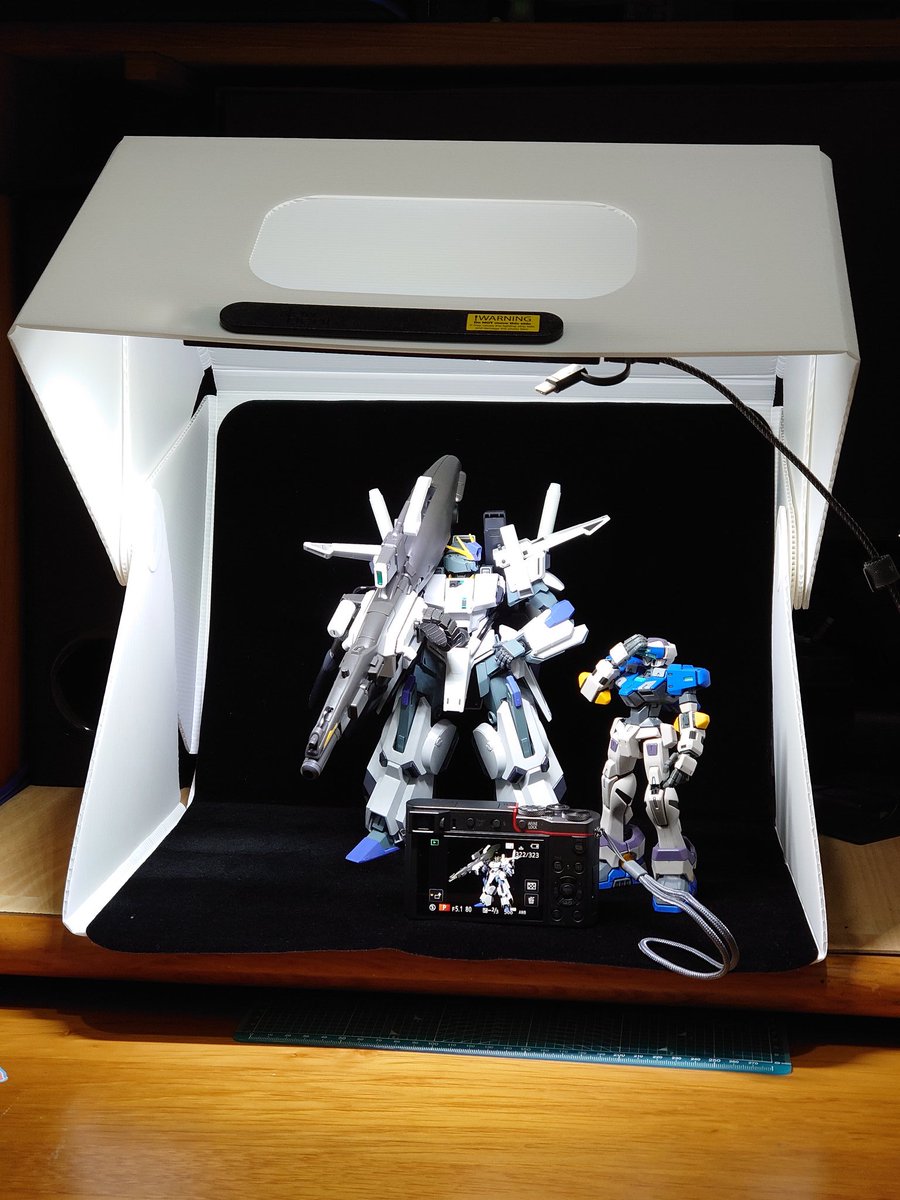 #ガンプラ 「狭いな、この撮影棚は」 「まぁ...君は太り過ぎだろう...」