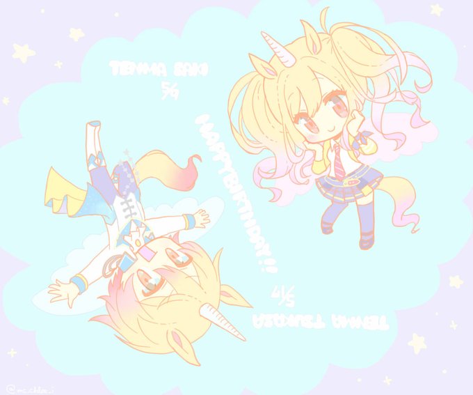 5月生まれのピアノ組、小さい頃は天馬さんちにお呼ばれして合わせてパーティーしてたら可愛いなと思いました。皆誕生日おめでとう! #prsk_FA #天馬咲希誕生祭2022 #天馬司誕生祭2022 #青柳冬弥誕生祭2022