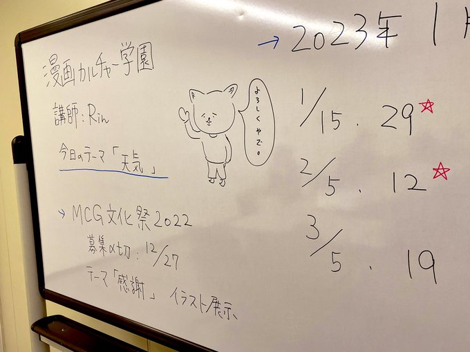今日は京都教室に来ておりますワン。 研修の先生も来ているので、たくさん質問したり好きなものの話をしてほしいワン! #京都 #漫画 #イラスト #MANGA #くらげ先生 #アナログ作品すごい #推し #合同誌もできたよワン