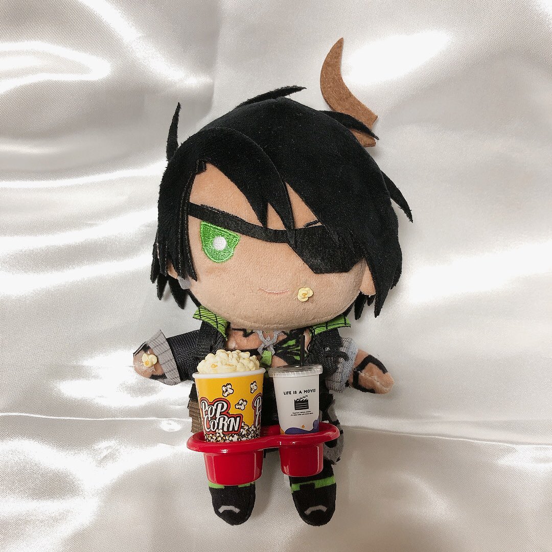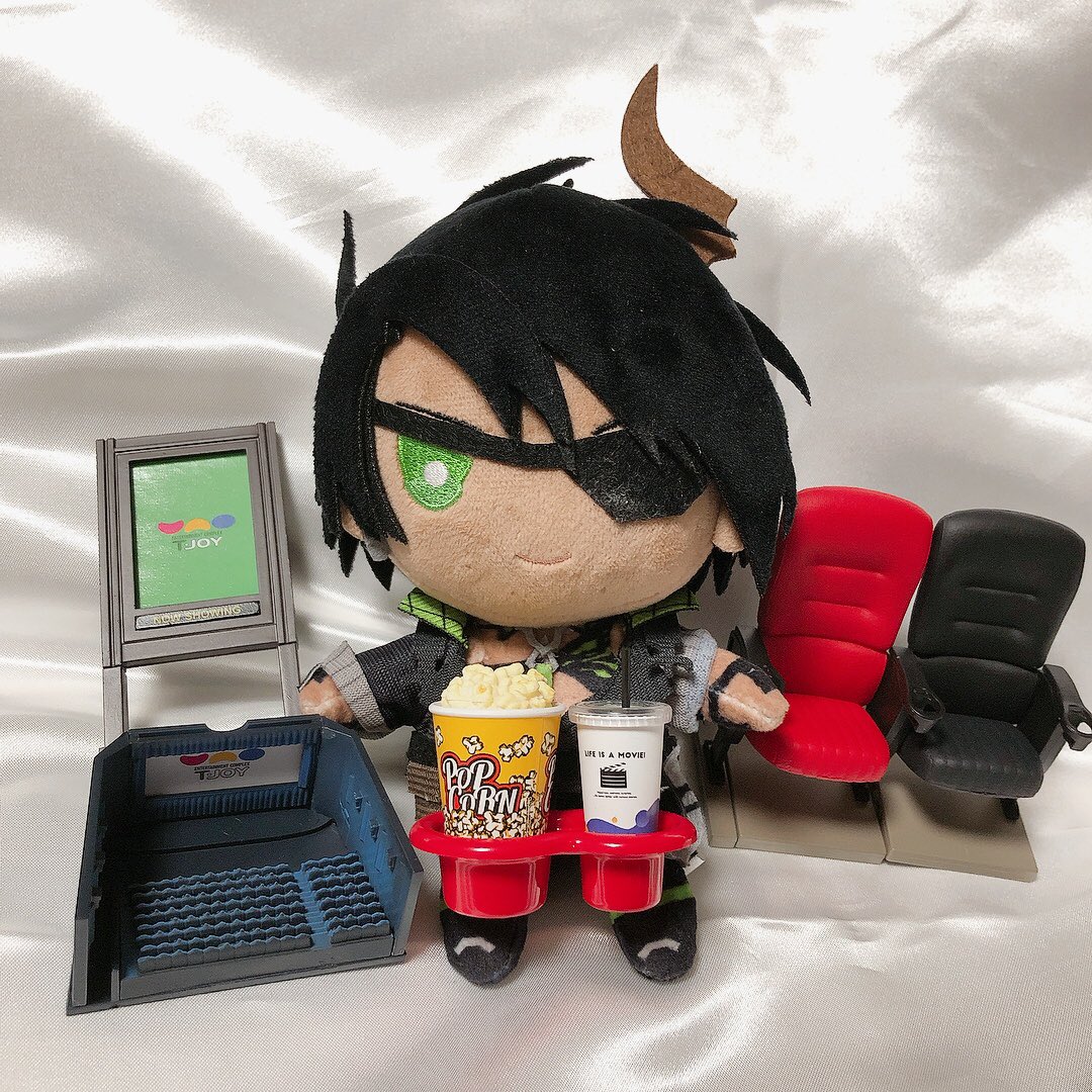 この前配信で言ってたやつだろう映画の! ポップコーン&ドリンクがちょうどオガメロにいいサイズ🍿 #オウ画