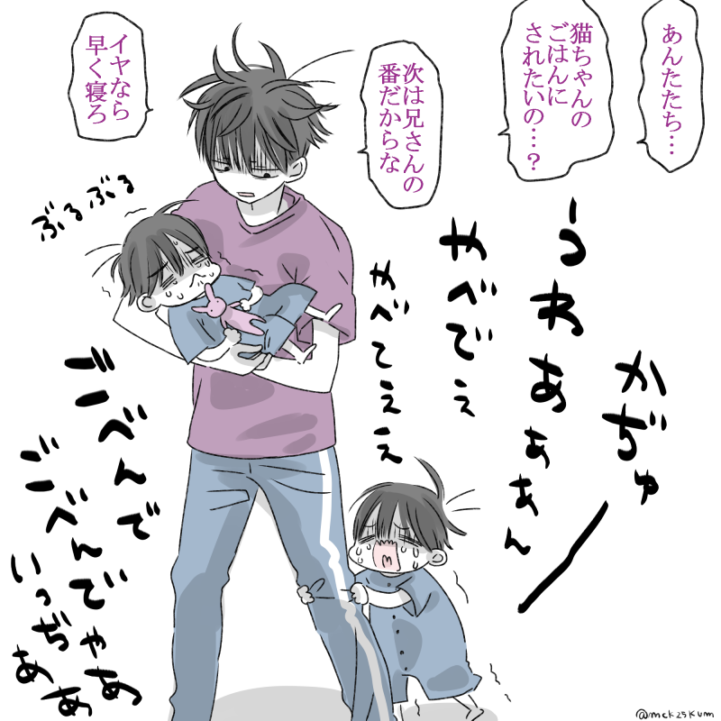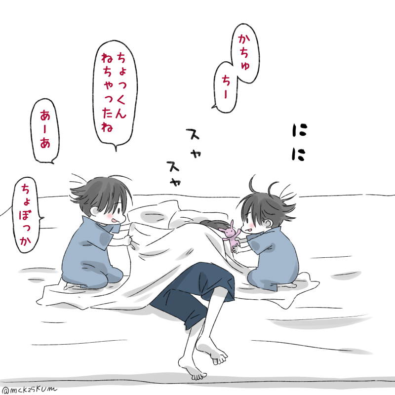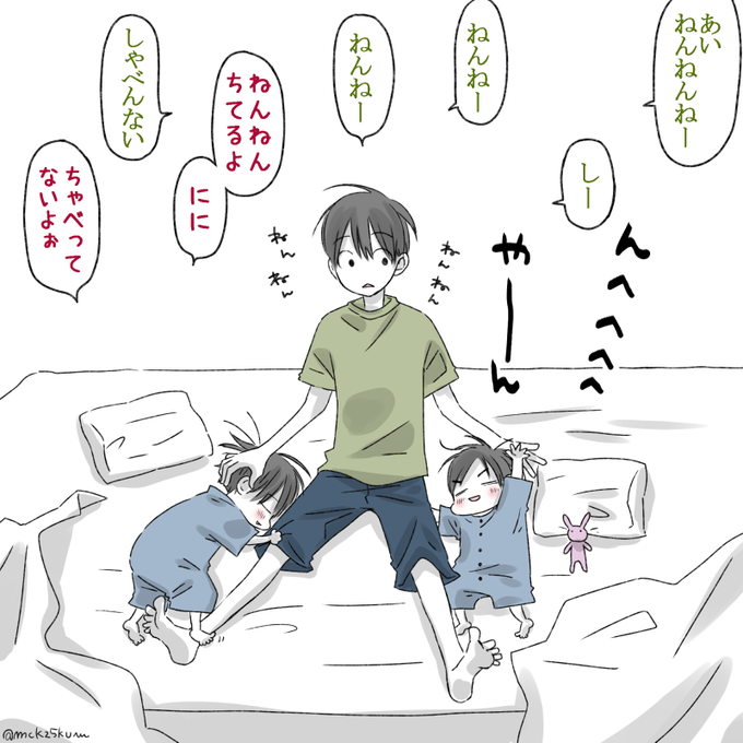 47 547 リクでいただいた小さい松を寝かしつける大きい松です。年齢操作お兄ちゃんと次男さんをおっきい三男さんに寝かしつけてもらいました。 (1/2) 23/08/03 17:50