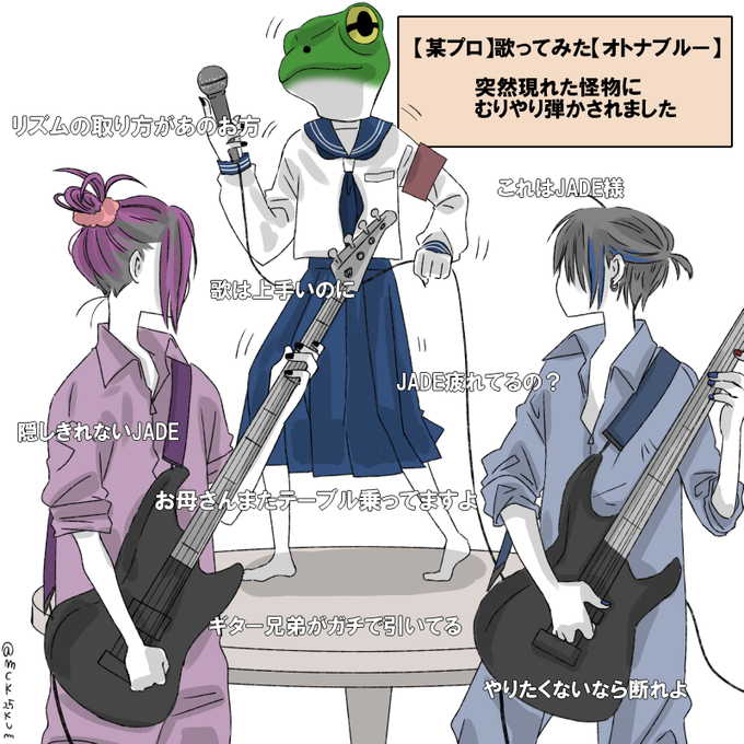 リクでいただいた歌うJADE様です。 弾いてみたするギター兄弟の名誉のために言いますが、衣装は勝手に着てきました。 かわいそうだと思った人はチャンネル登録高評価よろしくね☆