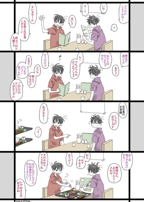 38 330 リクでいただいた仲良し末松ちゃん(夏)です。じゅしくんはこの世の謎だけど、ちゃんと弟の言い分を聞いてあげるいいお兄ちゃんです!! (1/2) 23/08/02 18:02