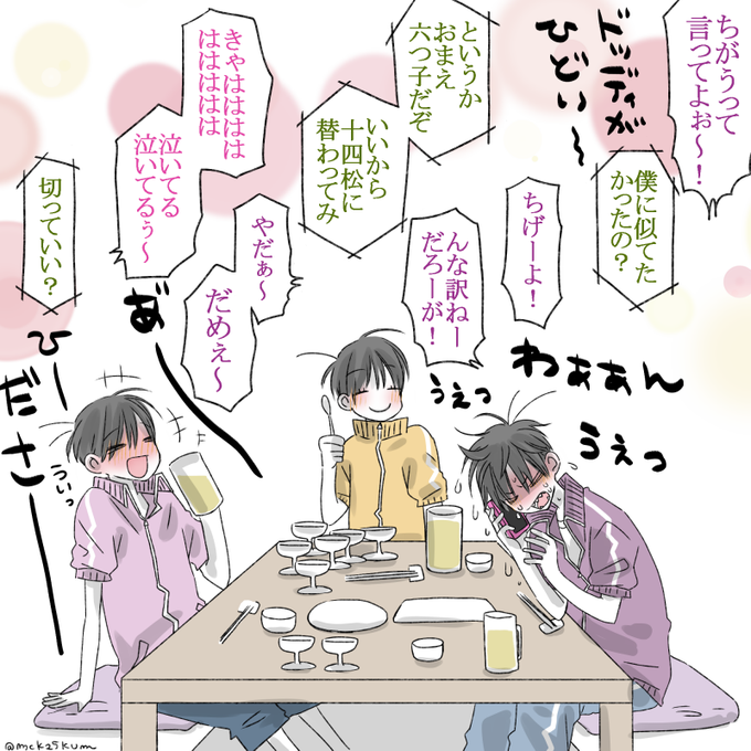 リクでいただいた酔っぱらってる弟松ちゃんです。この3人で飲んだら終始なごやかな雰囲気。 (1/2)