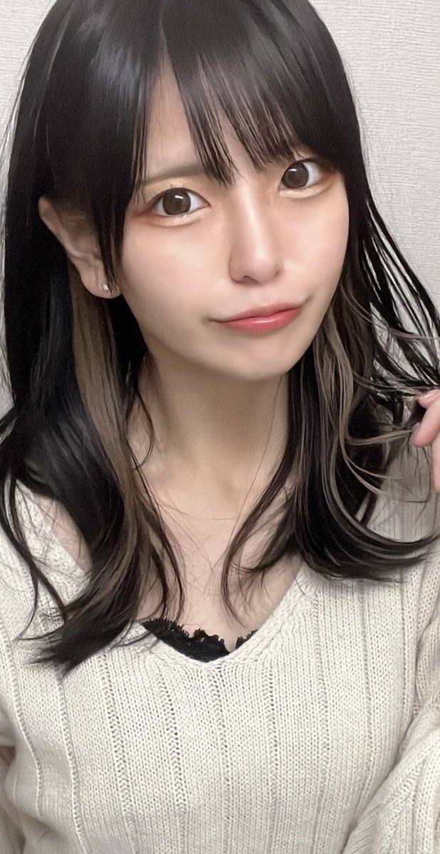 久々の黒髪にイヤリングカラー めちゃめちゃかわいい!!!🥺 ブリーチした部分 色落ちしたらもー少し明るくなるて🥰