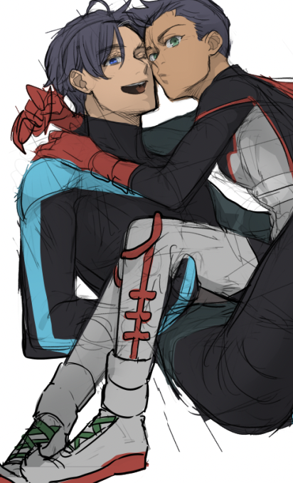 33 115 コミッション① バーナード先生(@thebernardchang )にお願いしたビヨンドダミアンとグレイソン…!!!!!最高最高…思っちゃ以上にかっこいいグレイソンを描いてもらえてしまって慄いている… ダミアンがカッコいいのは当たり前なの😌💕えー〜ーン幸せ!!! 23/05/07 15:56