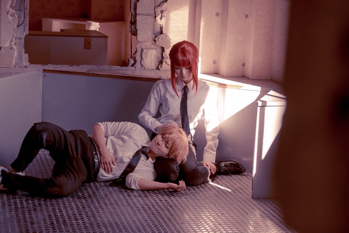 早川家の本撮影! チェンソはカラーフィルターいっぱい使った撮影やっぱ似合うね…!! 2人ともかっこよかったよ〜☺️ 湊瀬さん(@cos_minase6 )の傷メイクめっちゃ上手www #コスプレ総決算2022