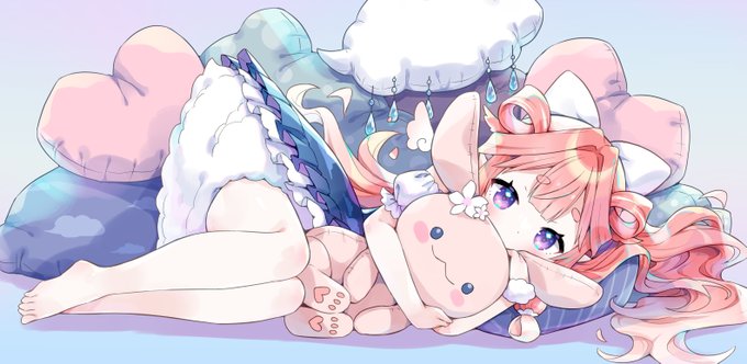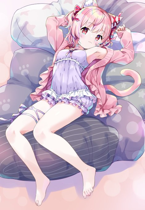 Skebのリクエスト。依頼者さんを寝転んだポーズでというものでした。ねこみみ!