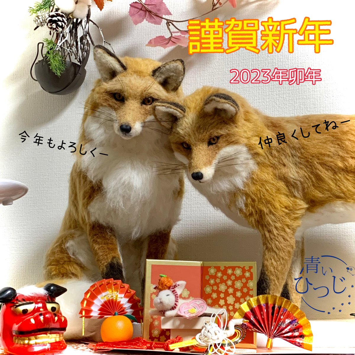 2 25 あけましておめでとうございます 今年もよろしくお願いします #羊毛フェルト #卯年 #キツネ #きつね 23/01/01 00:29