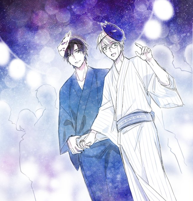宗守が夏ってか晩夏の季語になった記念(?) 💛鬼と白澤の夏祭りデート💚 (おじいちゃんたち🦊のおまじない付き)