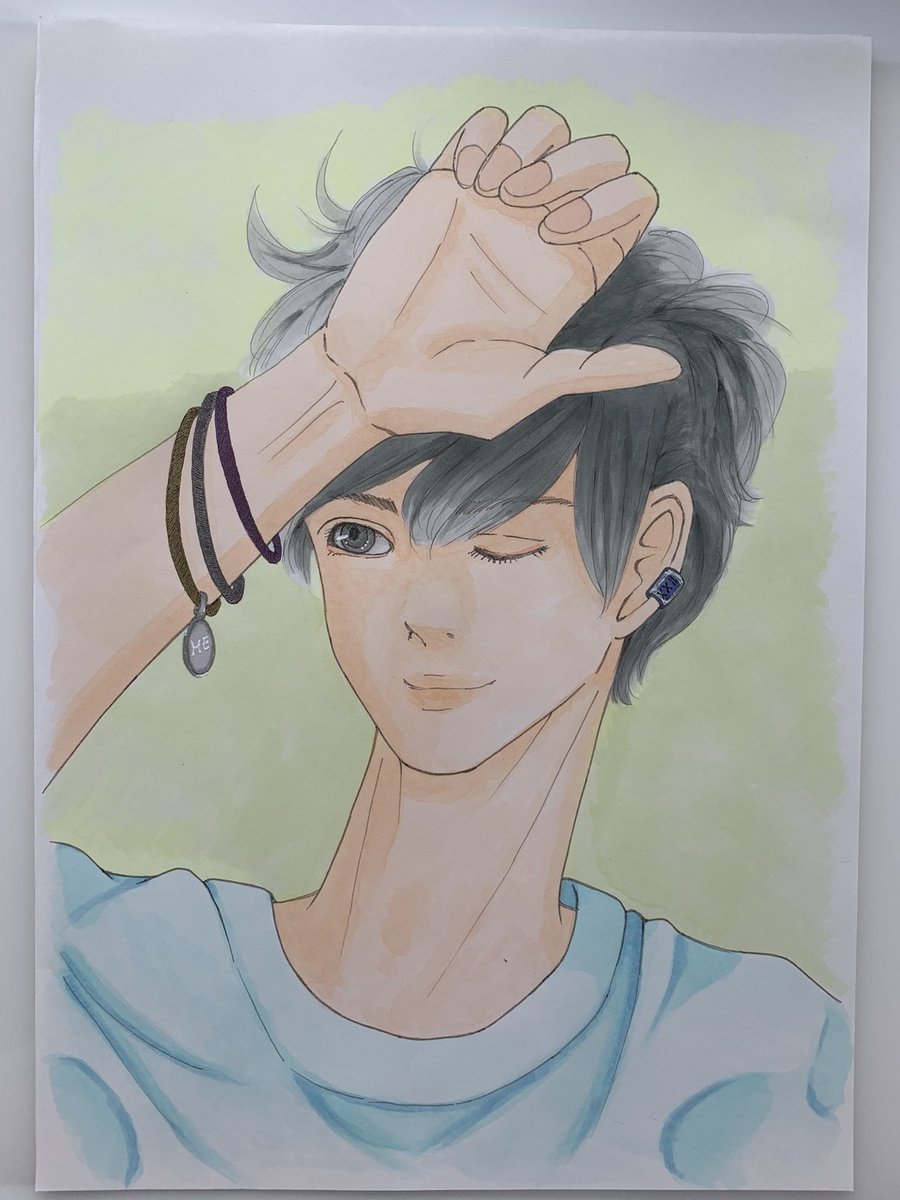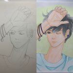 爽やか君 下書→トレースからの色塗り #イラスト #アナログ #モノクロ #鉛筆 #色鉛筆 #素人お絵かき #drawing #illustration #コピック #juiceup04