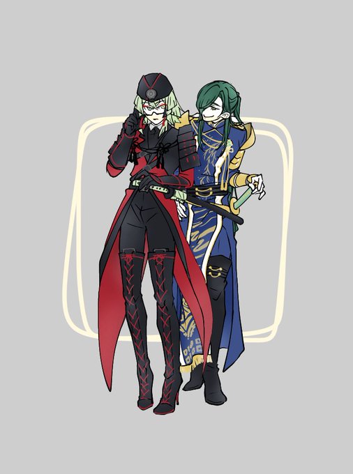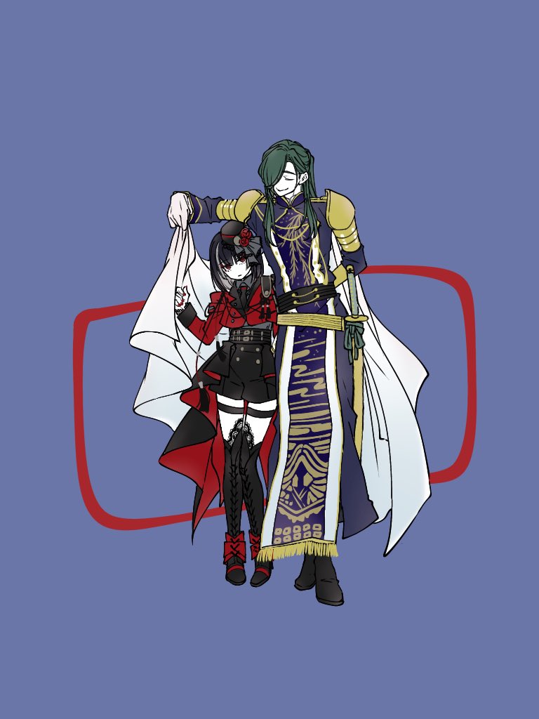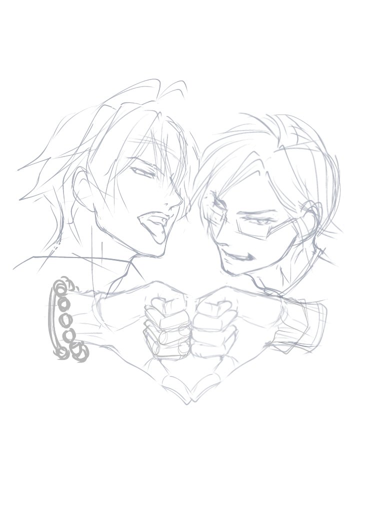 #このタグを見た人はラフ画とその完成絵を見せる サマトキ様と左銃の、ラフと完成