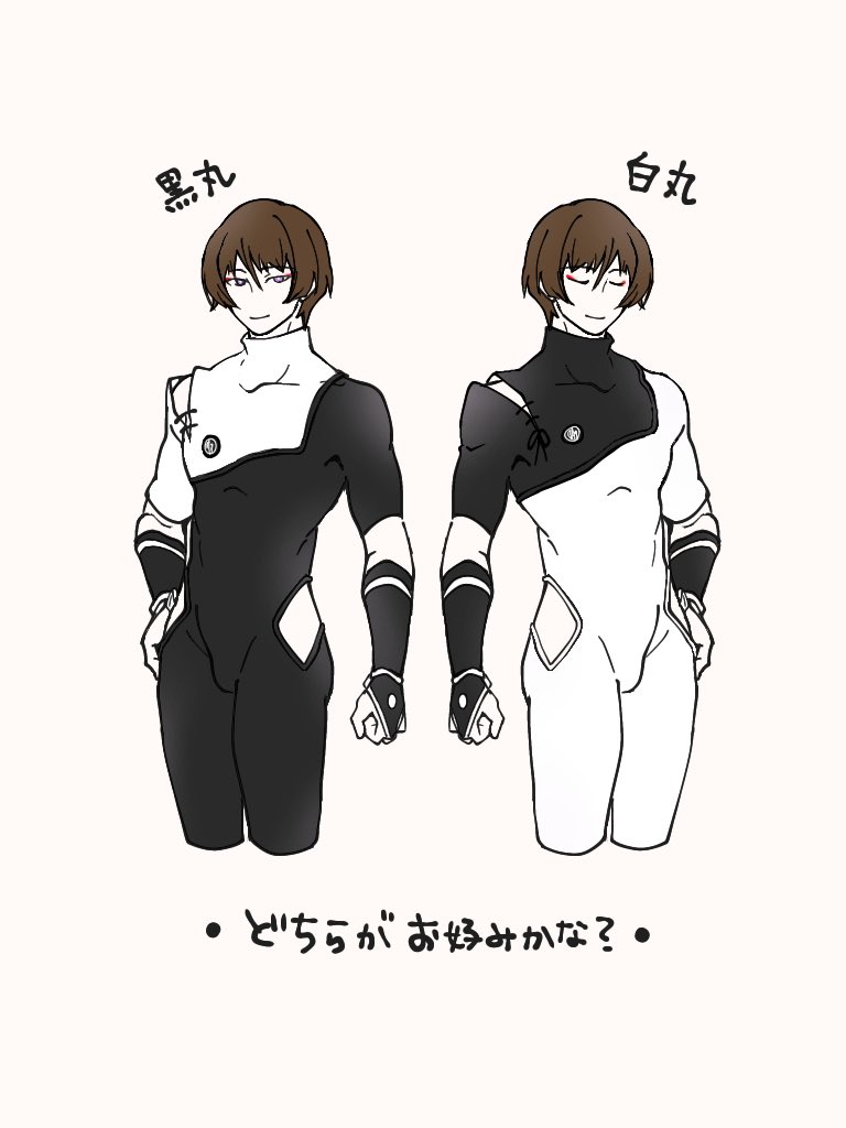 今年のグランパ丸さんのアンダーのネックの色が黒かった気がして(違うかもしれない)、色んなデザインはあれど色の反転は考えた事なかった…と思って描いてみたら白多めはモビルスーツ感が凄かった。 あとナニがとは言わないが透けそうなドキドキ感があって白丸さんドエッチ