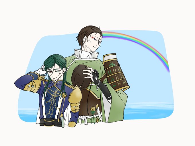 13 62 #このタグを見た人はラフ画とその完成絵を見せる サマトキ様と左銃の、ラフと完成 23/06/01 17:09