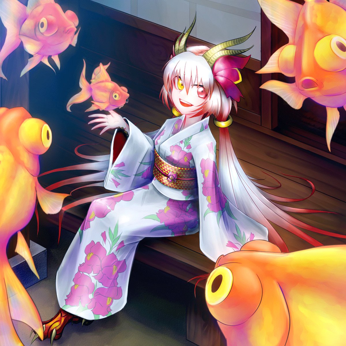 1 4 Flying Goldfish/ 空飛ぶ金魚 #pixiv今日のお題 #金魚 #オリジナル #ファンタジー #女の子 #龍人 #金魚草 #出目金 pixiv.net/artworks/91258… 21/07/15 16:20