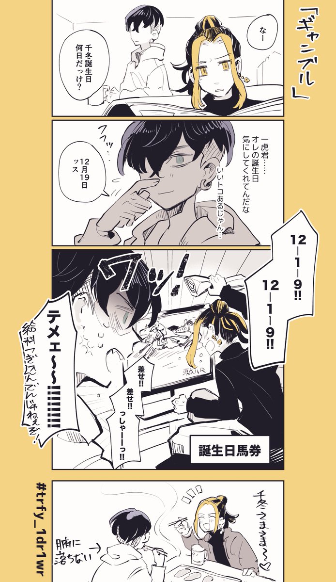 とらふゆワンドロお題【ギャンブル】 全然ワンドロできなかったけどこのお題描いておかなきゃ…となったので……。 2.5時間ドロ! #trfy_1dr1wr @trfy_1dr1wr