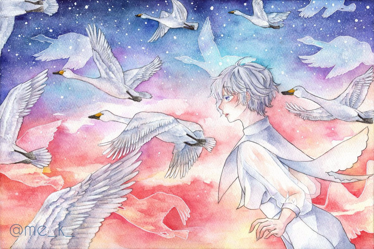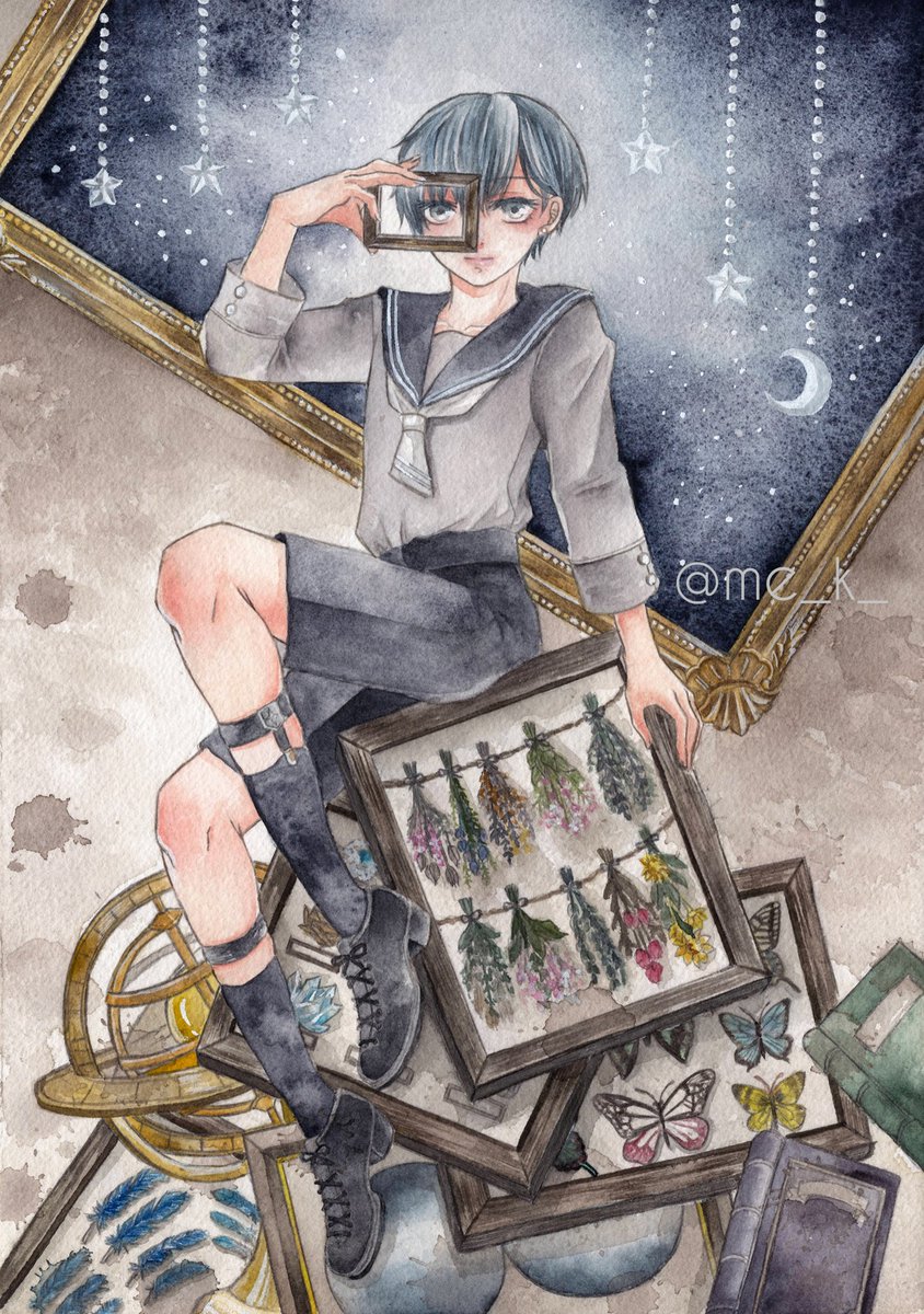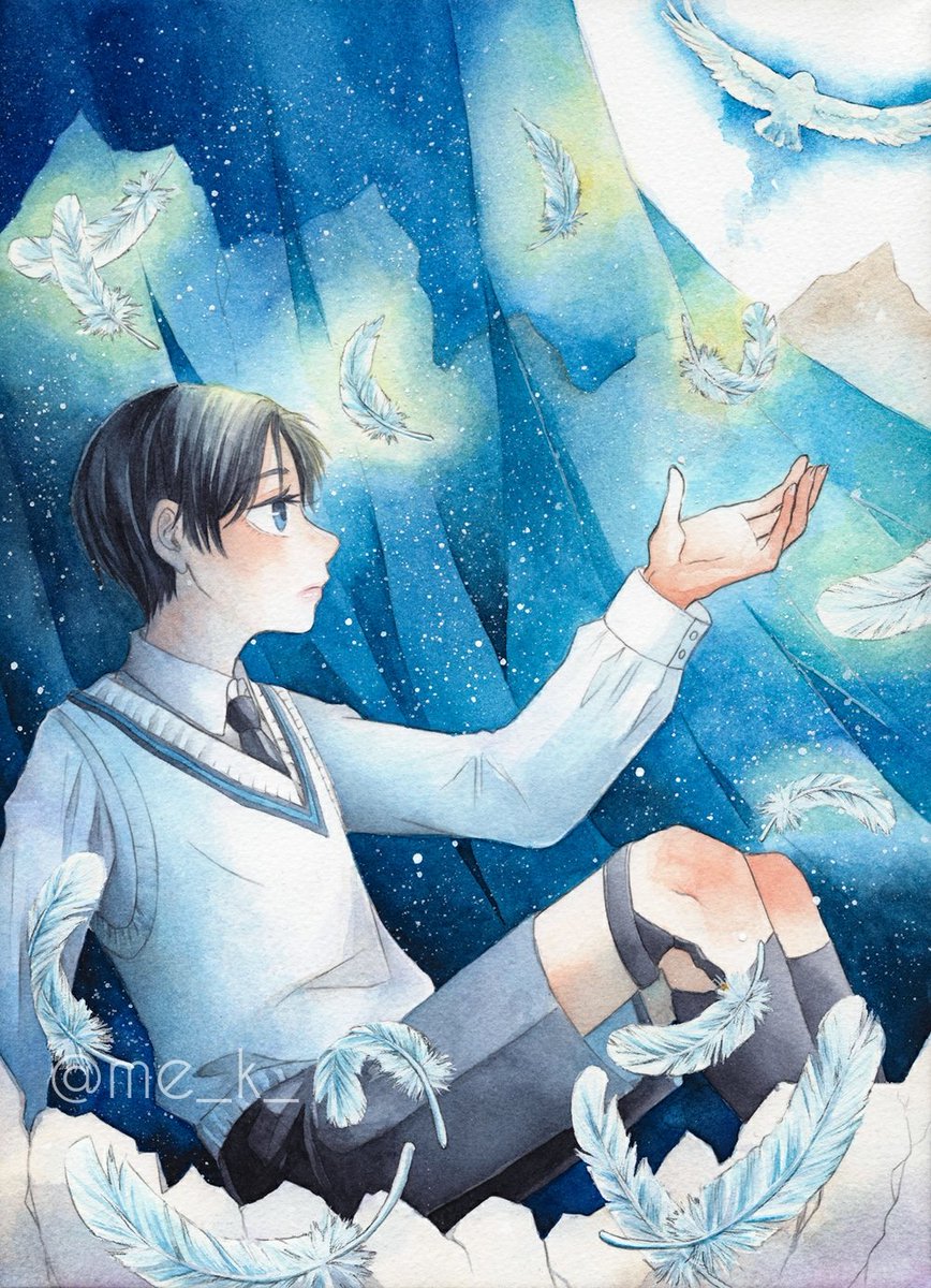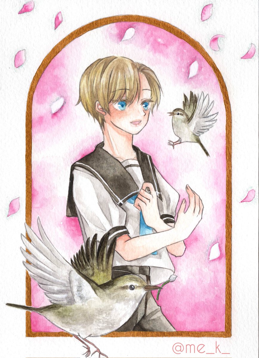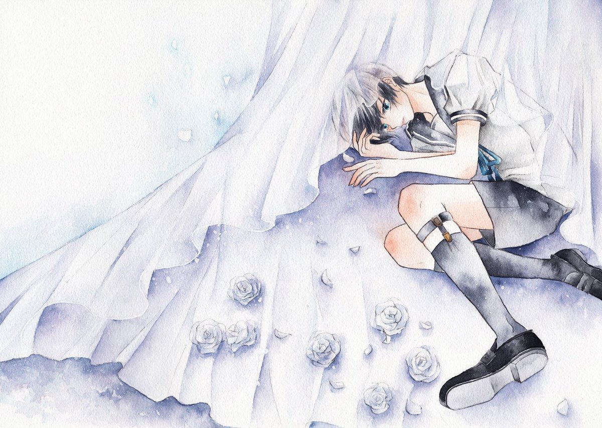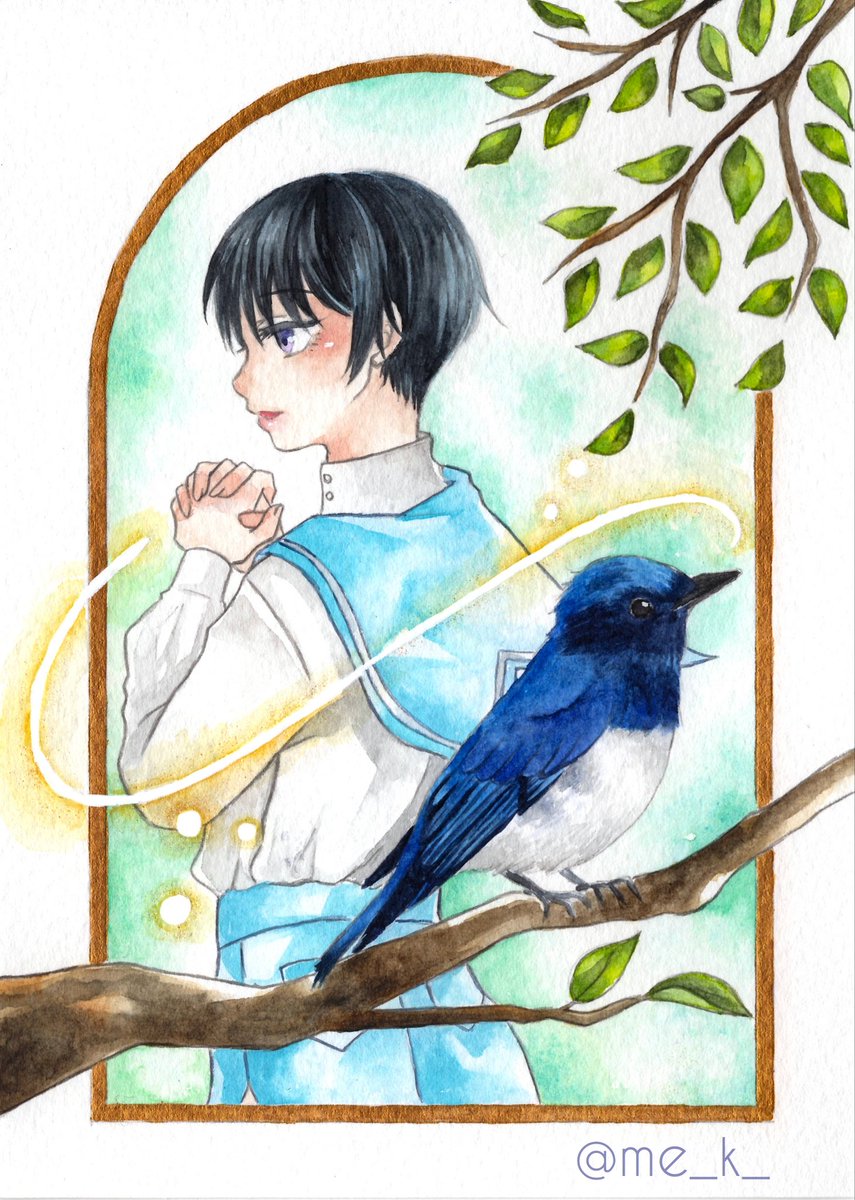 #水彩の魔術師の集い 私は儚い時間を切り取る魔術師 素敵な企画に参加させていただきます🙇 刻々と流れる少年少女の時間の一瞬を切り取ったような作品を描きたいと思いながら透明水彩でお絵描きしてます。セーラー服の少年が多めです🎨