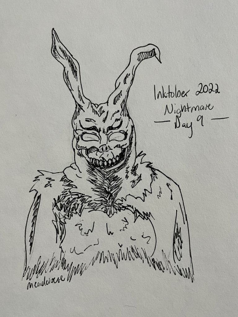 “28 days, 6 hours, 42 minutes, 12 seconds. That is when the world will end.” #inktober2022 #inktoberday9 #donniedarko