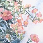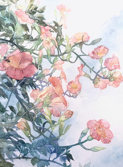 『凌霄花(のうぜんかずら)』 透明水彩・絵墨・アルシュ紙細目