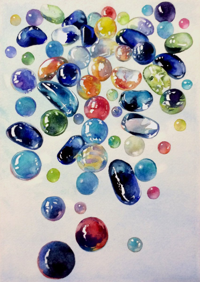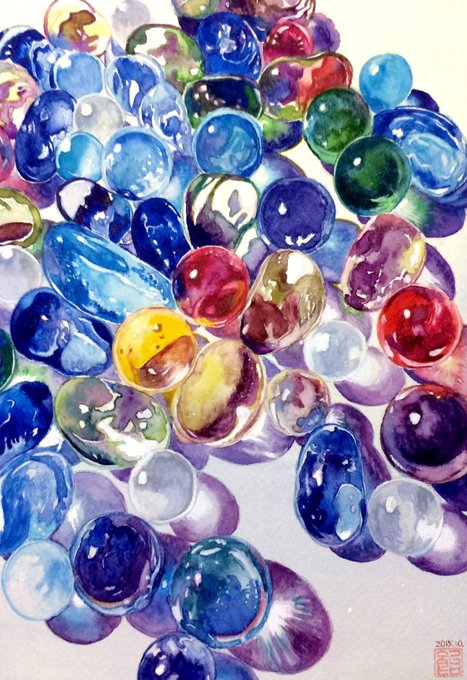 60 718 帰ってきてWi-Fi繋いだらワッ!?!?!?ビー玉の絵すごいことになってる…2作目も置いとくね 陰を敢えて描かなかった🫧 23/06/04 18:30