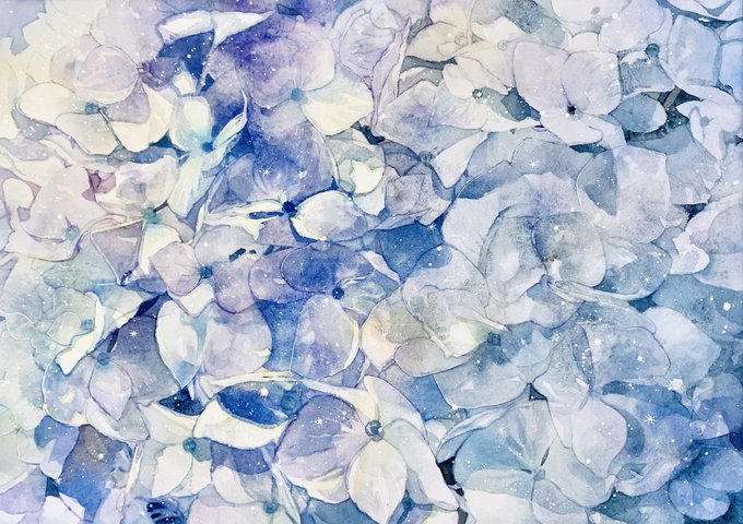 『紫陽花(あじさい)2023』 透明水彩・アルシュ紙細目・名村大成堂雅心東紅