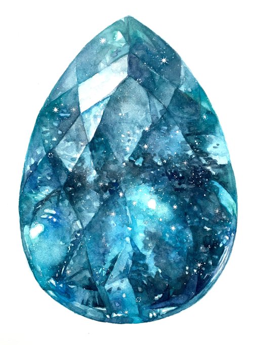 31 150 pietraシリーズ 透明水彩・絵墨・アルシュ紙 参考資料(ブルートパーズ、アメジスト、スモーキークォーツ、ダイヤモンド) 23/02/13 20:29