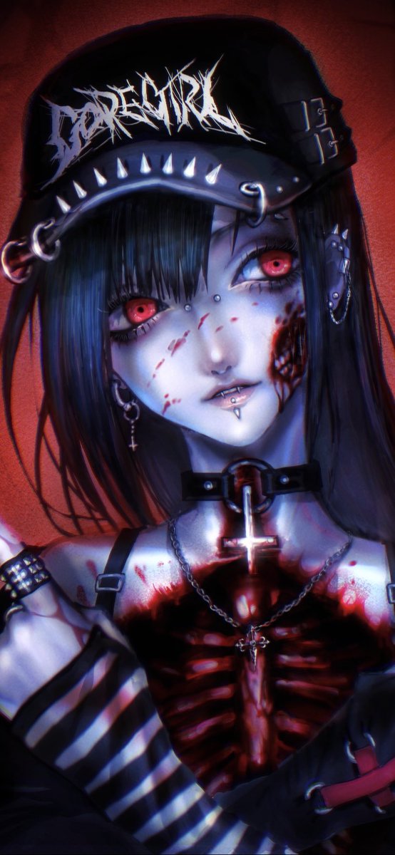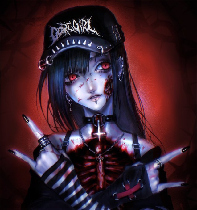 yu-kiさん(@carnagesociety )のオリキャラ"ゴアガール☠️"のファンアート描かせて頂きました❗️ キャラデザ可愛いし好きな要素たくさんあるのでとても楽しかったです☺️ 素敵な企画ありがとうございます🤘🏻✨ 2枚目はお顔のアップです♡ #ゴアガールファンアート #NFT #NFTart #opensea