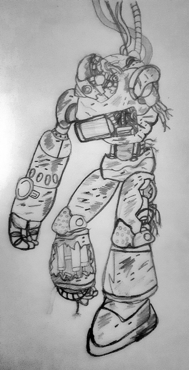 Day 22 Open Part. 2 Um robô aberto para manutenção após combate, com uma quantidade considerável de reparos a serem feitos. Só fui ter a ideia de fazer o desenho após o primeiro. #Inktober #inktober2021day22 #inktober2021 #InktoberDay22 #open #inktober2021open