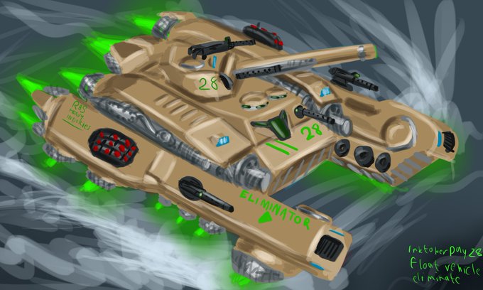 mechademik Inktober day 28 Float Vehicle Eliminate, for this one I want to draw a hover tank. #mechademik #chloebellaw #inktober2020 #inktoberday28 #inktoberfloat #inktober #float #hovercraft #hover #hovertank #tank #warmachine #eliminate #vehicle #art