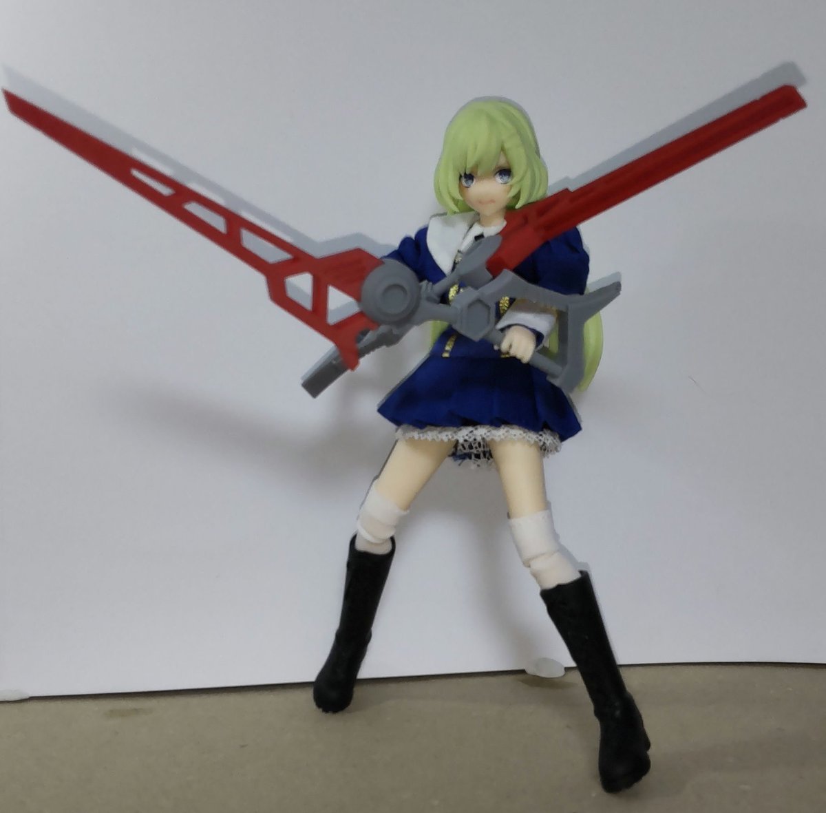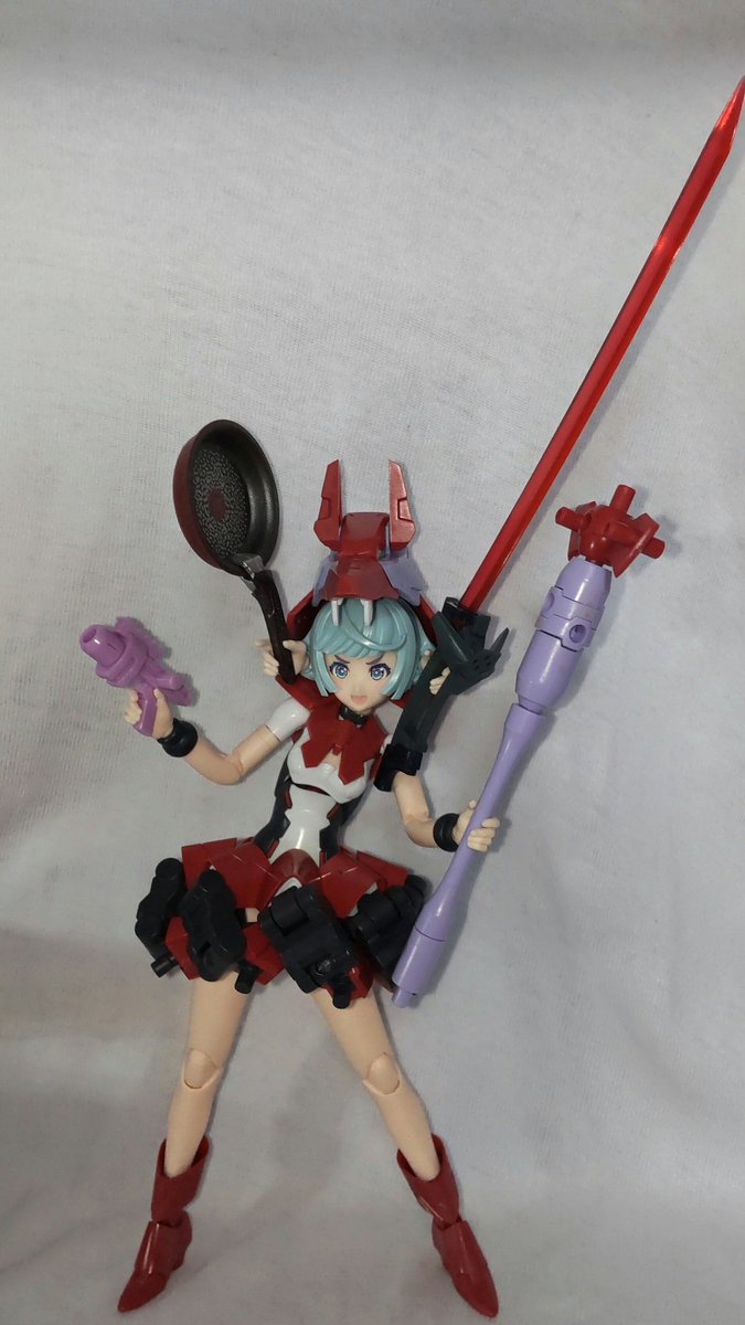 赤ずきんのおさげジョイントが手首と同径なのでいろいろ持たせてみた。ロボットのサブアーム的なイメージで #メガミデバイス