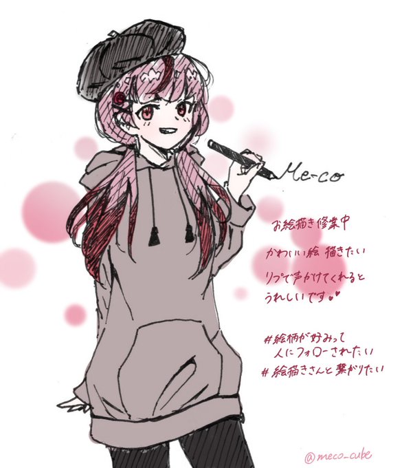 代理ちゃん描いたので遅ればせながら自己紹介! Me-co みぃこ イラストを描きます。赤とかピンクとか好き。いろんなキャラ描けるようになりたいです! 友達になってくれる方いませんか~(>ω<)/ リプ欄で声かけていただけると嬉しいです(*^^*) #絵描きさんと繋がりたい