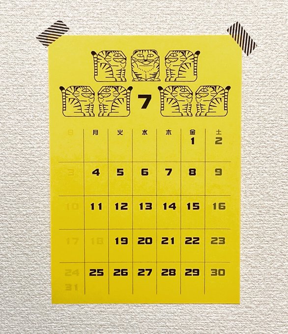 0 7 四角い虎のカレンダー7月 #イラスト #とら #カレンダー #黄色 #モノトーン 22/07/07 13:12